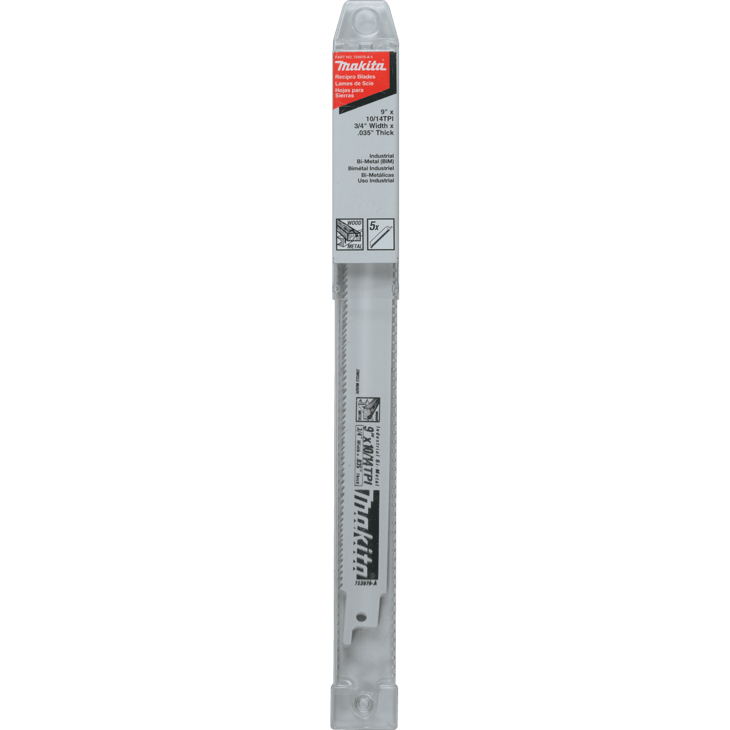 Makita All Purpose Reciprocating Saw Blades are made from high quality steel for clean cuts and longer life. They are designed to cut through a variety of materials including wood and metal. The blade features a 3/4" width for faster cutting. Bi-Metal construction lasts 10 times longer than HCS blades. First tooth consistently centered on each blade for straight plunge cuts. For making cuts in nail embedded wood, composition, metal and plastic. Convenient 5 pack.