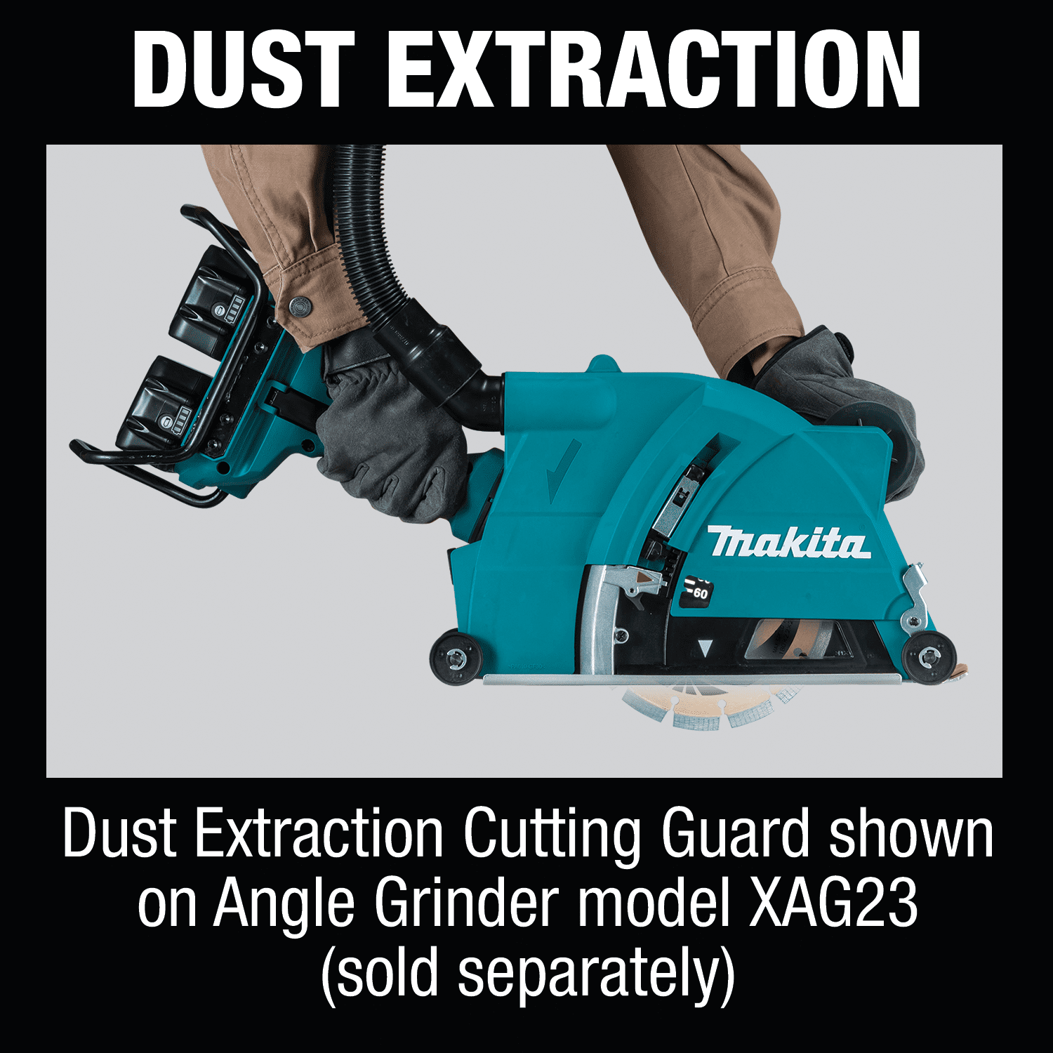 The Makita 9" Dust Extraction Cutting Guard is designed to work with Makita 9" Angle Grinders (models GA9040S, GA9031Y, GA9060, all sold separately). This full-featured sawing guard is engineered for precision cutting and maximum dust extraction when used with a vacuum (sold separately). The plunge action allows for maximum dust containment while making a cut. The adjustable depth are engineered for quick depth adjustments, with a clear viewing window for improved visibility. Added features include a rounded base plate lead edge with rollers for smooth travel while cutting, and an adjustable guide that is easy to see for increased cutting accuracy. Easily adjustable depth setting allows up to 2-3/8" cutting depth when used with a 9" cutting blade. Plunge action feature allows maximum dust containment while initiating a cut. Adjustable depth stops allows for quick and easy depth-of-cut adjustment. Clear viewing window for improved visibility. Dust port can be adjusted 360° for added versatility. Handle attachment point on guard for increased comfort. Rounded base plate lead edge and rollers for easier travel while cutting. Easy to see adjustable guide for increased accuracy. Includes Inner Flange (126601-7) required for guard to function properly. For use with Makita 9" Angle Grinders models GA9040S, GA9031Y, GA9060, XAG13 and XAG23.