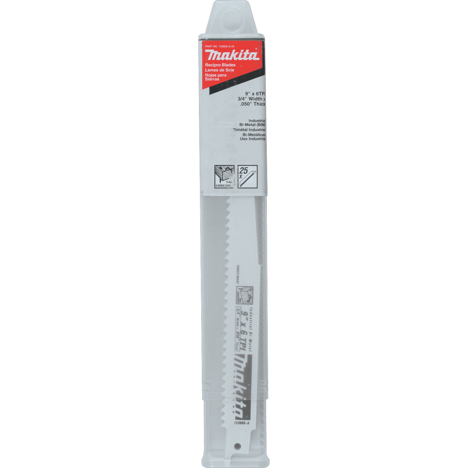 Makita Wood Cutting Reciprocating Saw Blades are made from high quality steel for clean cuts and longer life. They are designed to cut through a variety of wood building materials. The blades feature a 3/4 in. width for faster cutting. Bi-Metal construction lasts 10 times longer than HCS blades. First tooth consistently centered on each blade for straight plunge cuts. For fast cutting, nail embedded wood, insulating board, plywood and plastic pipe from 1/4 in. to 7 in. Convenient contractor pack, 25 pieces.