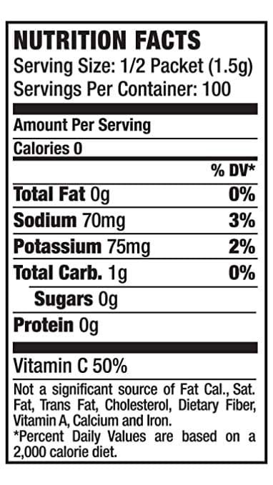 - This scientifically formulated powder stick was developed to provide a ZERO CALORIE, ZERO SUGAR balance of Fluids, Electrolytes, and Vitamin C