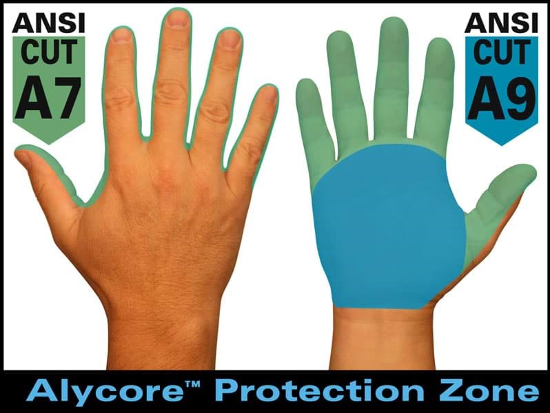 - Made with Alycore providing cut and puncture resistance in palm