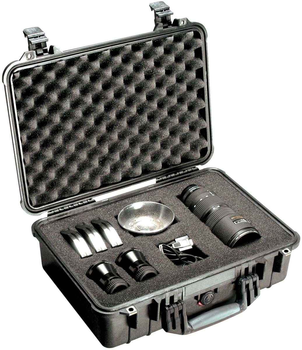 • DescriptionPelican 1500 Interior Dimensions: 16.75" x 11.18" x 6.12" (42.5 x 28.4 x 15.5 cm) Black Watertight, crushproof, and dust proof Easy open Double Throw latches Open cell core with solid wall design Strong, light weight O-ring seal Automatic Pressure Equalization Valve Comfortable rubber o...