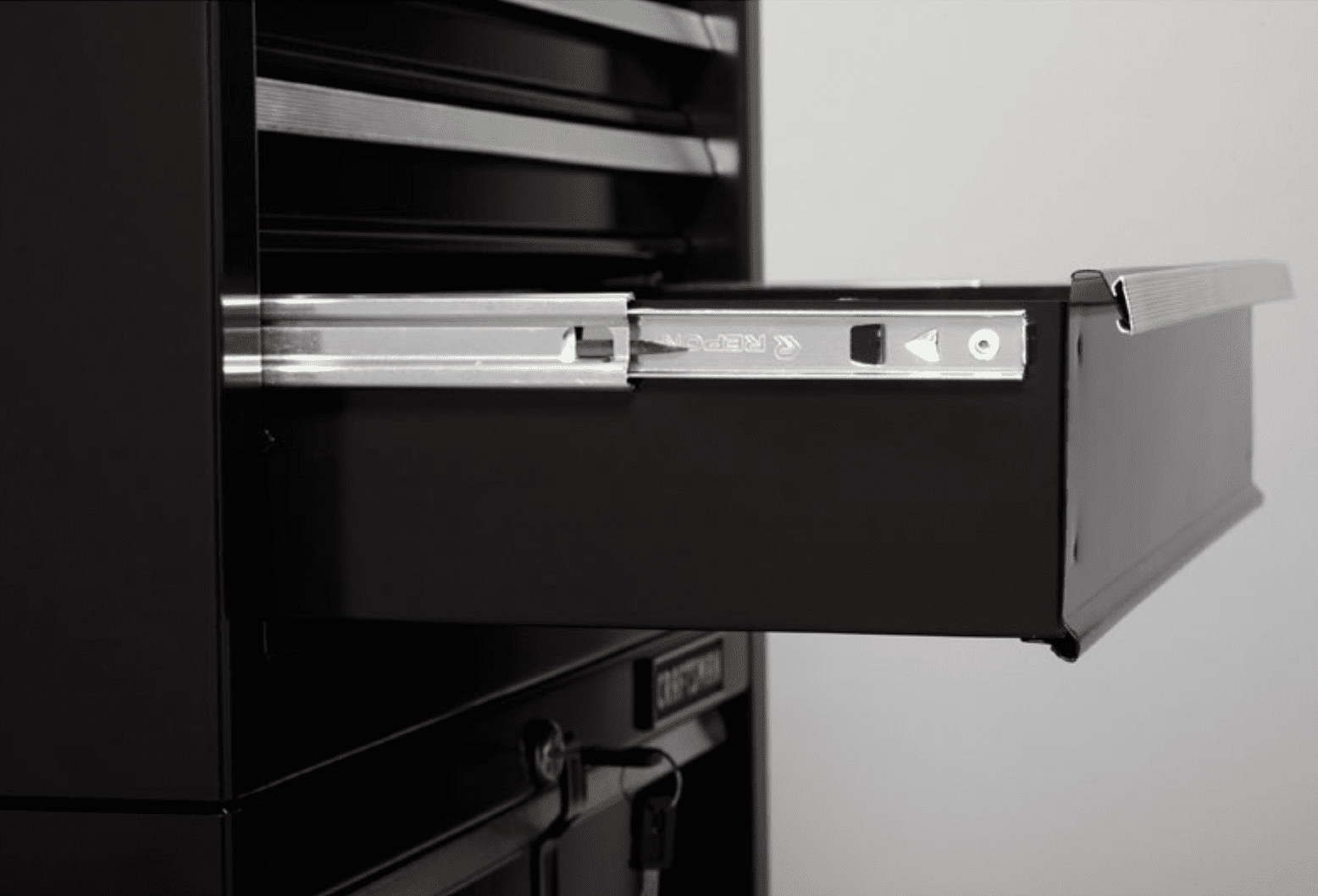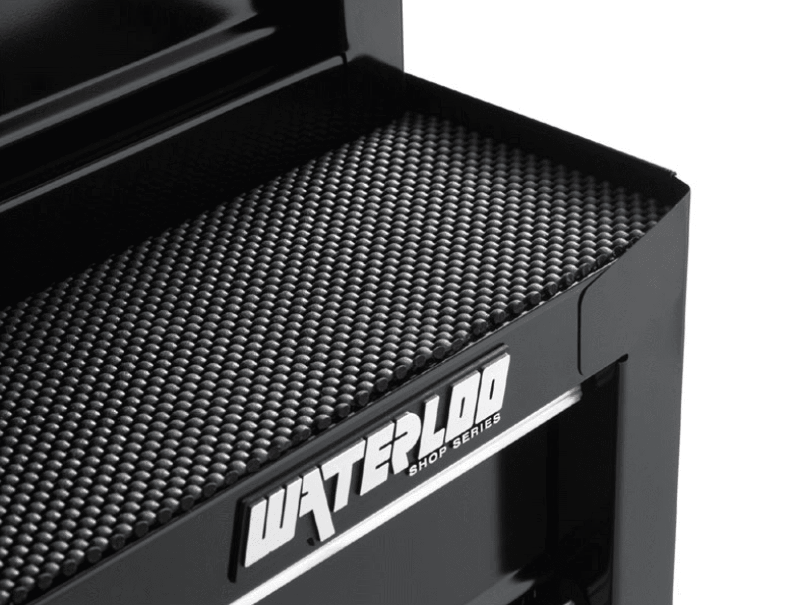 - DescriptionWaterloo Metal Tool Cabinet Black Full-extension 25 lb. ball-bearing drawer slides Keyed external lock bar Full-width drawer pulls Sturdy 4 In. x 2 In. casters offer 500 lb. load rating Detent drawer latching system Medium use / medium capacity Size: 26" x 18" x 32" 5 Drawer