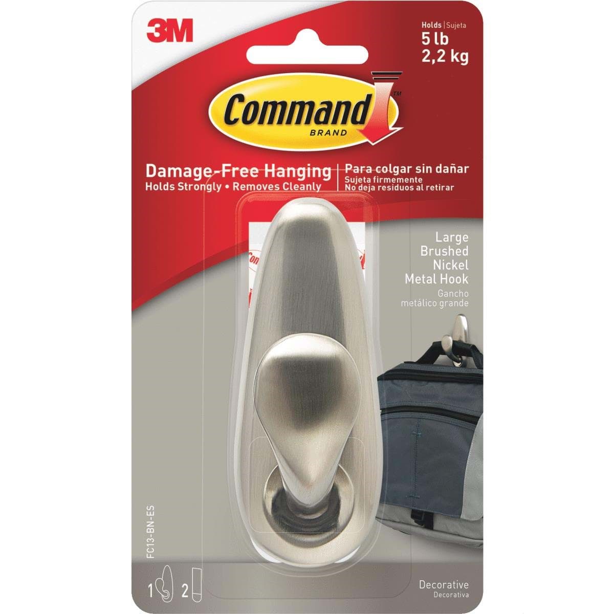 Elegant, simple design complements any room. Holds firmly and strongly until you want to take it down. Stretch release technology offers damage-free removal. Reusable hook. Contains: 1 hook and 2 Command adhesive strips per pack. Not recommended for wallpaper. Do not use for antiques, heirlooms, or other valuable or irreplaceable items.