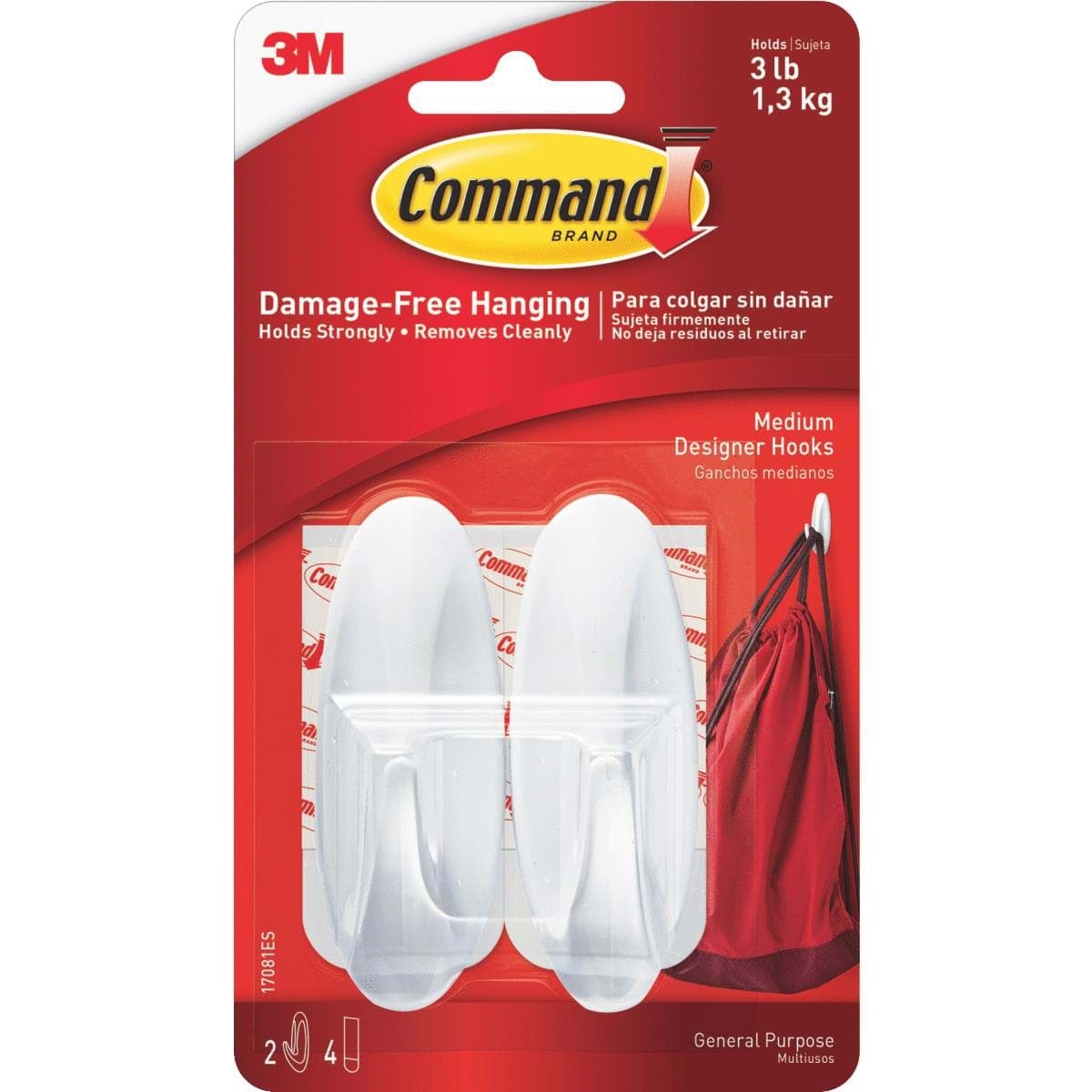 Great designs that will enhance any home and office by creating solutions for organizing and decorating. Holds firmly until you want to take it down. Removes cleanly. Reusable hook. Stretch adhesive to remove hook. No surface damage. White.