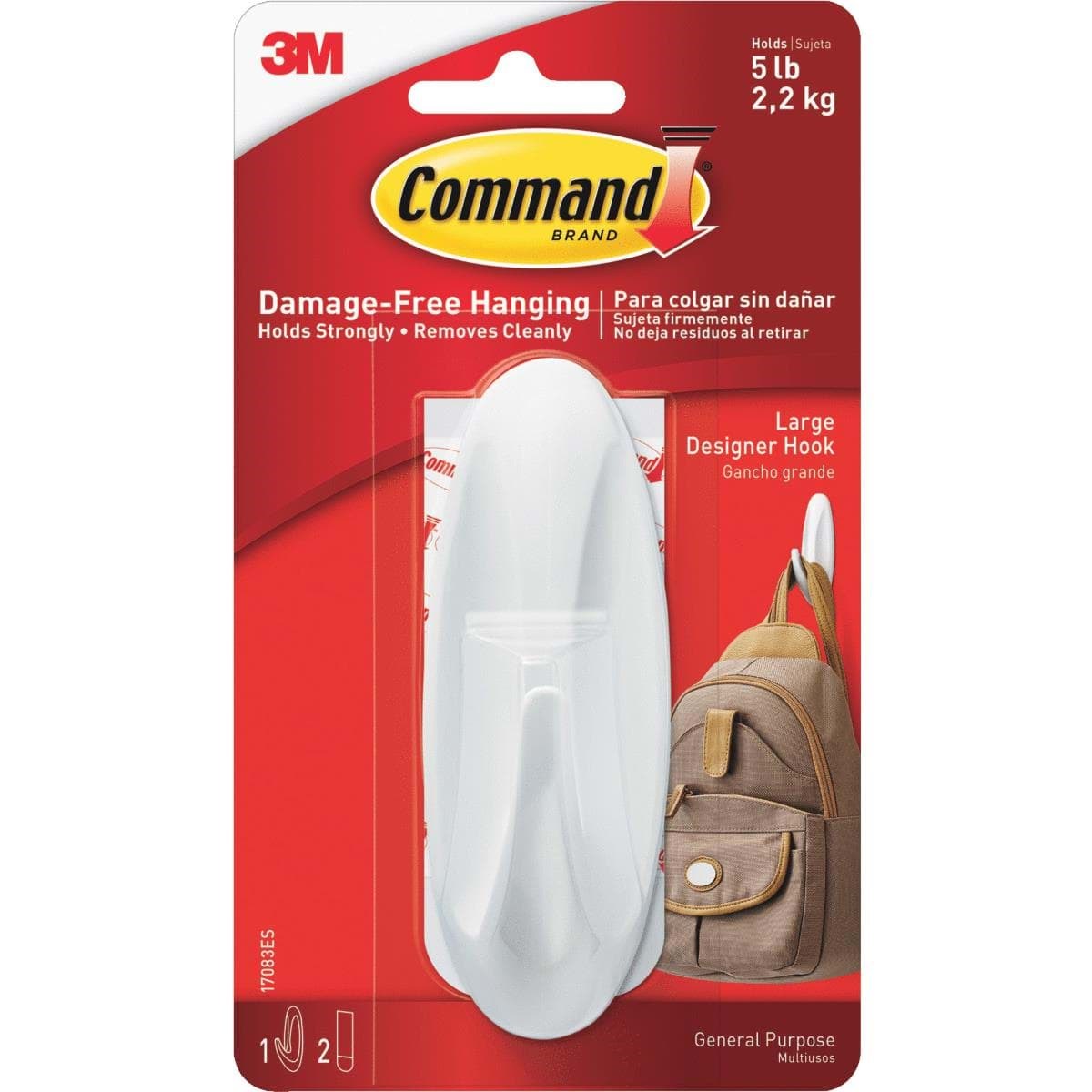 Great designs that will enhance any home and office by creating solutions for organizing and decorating. Holds firmly until you want to take it down. Removes cleanly. Reusable hook. Stretch adhesive to remove hook. No surface damage. White.