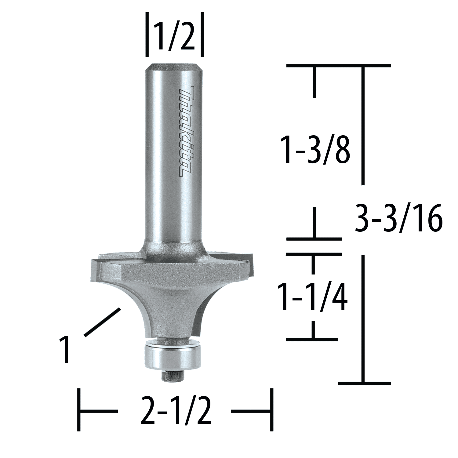Makita Router Bits are designed to work with routers in a variety of routing applications. The bits feature high quality carbide for more efficient material removal. Each bit is manufactured from high quality steel for added durability and long life. Carbide tipped for improved speed and long life. For smooth decorative edge rounding or molding. Ball bearing pilot for improved accuracy and efficiency. For use with routers that accept 1/2" shank bits.