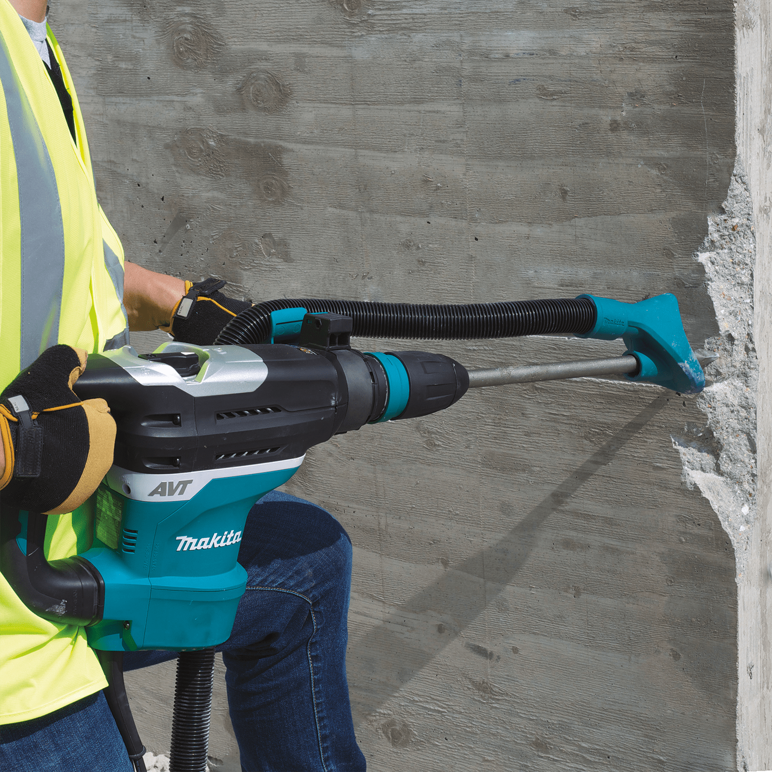 The Makita Dust Extraction Attachment is engineered to work with Makita SDS-MAX Rotary Hammers and Demolition Hammers to efficiently extract dust from concrete demolition applications. The attachment features convenient hose holders that keep the hose from interfering with the operation of the tool.The Hammer Attachment is part of Makita's expanding line-up of dust extraction solutions (sold separately). Ideal for use in concrete demolition applications. Designed for use with bull point, chisel, bushing and scaling steel. Hose holders help keep hose out of the way of the operator for convenience. Hose holder joint is included for improved hose management with model XRH07. For use with Makita rotary or demolition hammers that accept Spline, SDS-MAX and 3/4" Hex bits. Part of Makita's line-up of dust extraction solutions, including the models VC4710, XRH04Z, XRH07ZX, XRH08Z (sold separately)
