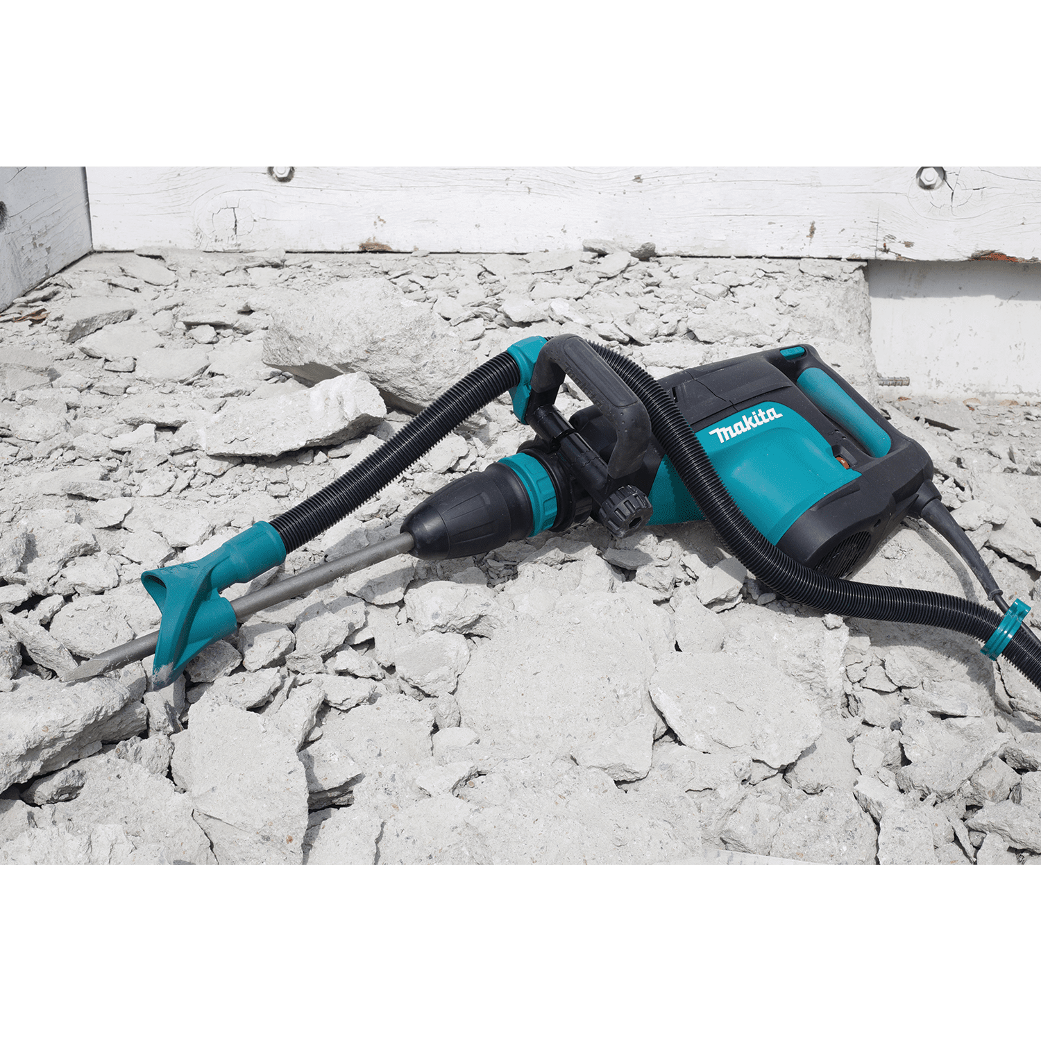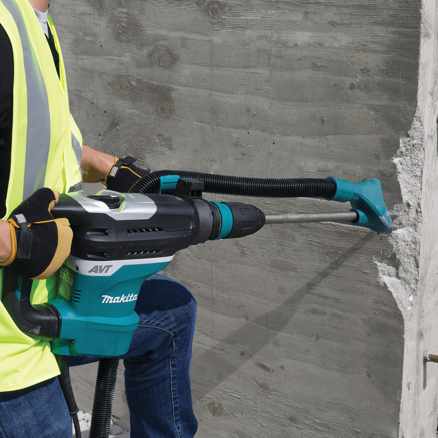 The Makita Dust Extraction Attachment is engineered to work with Makita SDS-MAX Rotary Hammers and Demolition Hammers to efficiently extract dust from concrete demolition applications. The attachment features convenient hose holders that keep the hose from interfering with the operation of the tool.The Hammer Attachment is part of Makita's expanding line-up of dust extraction solutions, including the VC4710 Xtract Vac® (sold separately). Ideal for use in concrete demolition applications. Designed for use with bull point, chisel, bushing and scaling steel. Hose holders help keep hose out of the way of the operator for convenience. For use with a job site vacuum (sold separately). For use with rotary or demolition hammers that accept SDS-MAX as well as Spline and 3/4" Hex bits. Part of Makita's expanding line-up of dust extraction solutions, including the Xtract Vac® model VC4710 (sold separately)