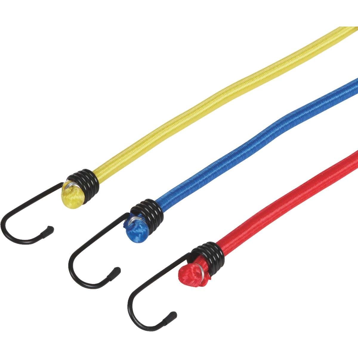 Multi-strand natural rubber core. Nylon covered. Vinyl-coated hooks. All lengths are the length measurement of strap without S hooks. Flexible to -40 deg. F. Ozone and sunlight-resistant. Each individual stretch cord UPC coded. Assorted colors - cannot specify color.