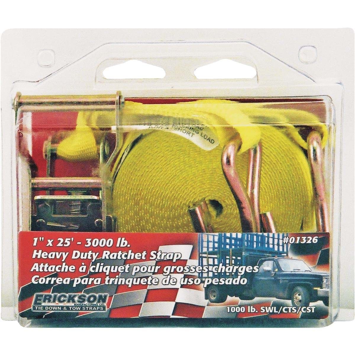 Erickson Heavy-Duty Ratchet Strap with J Hooks - 1"x25'