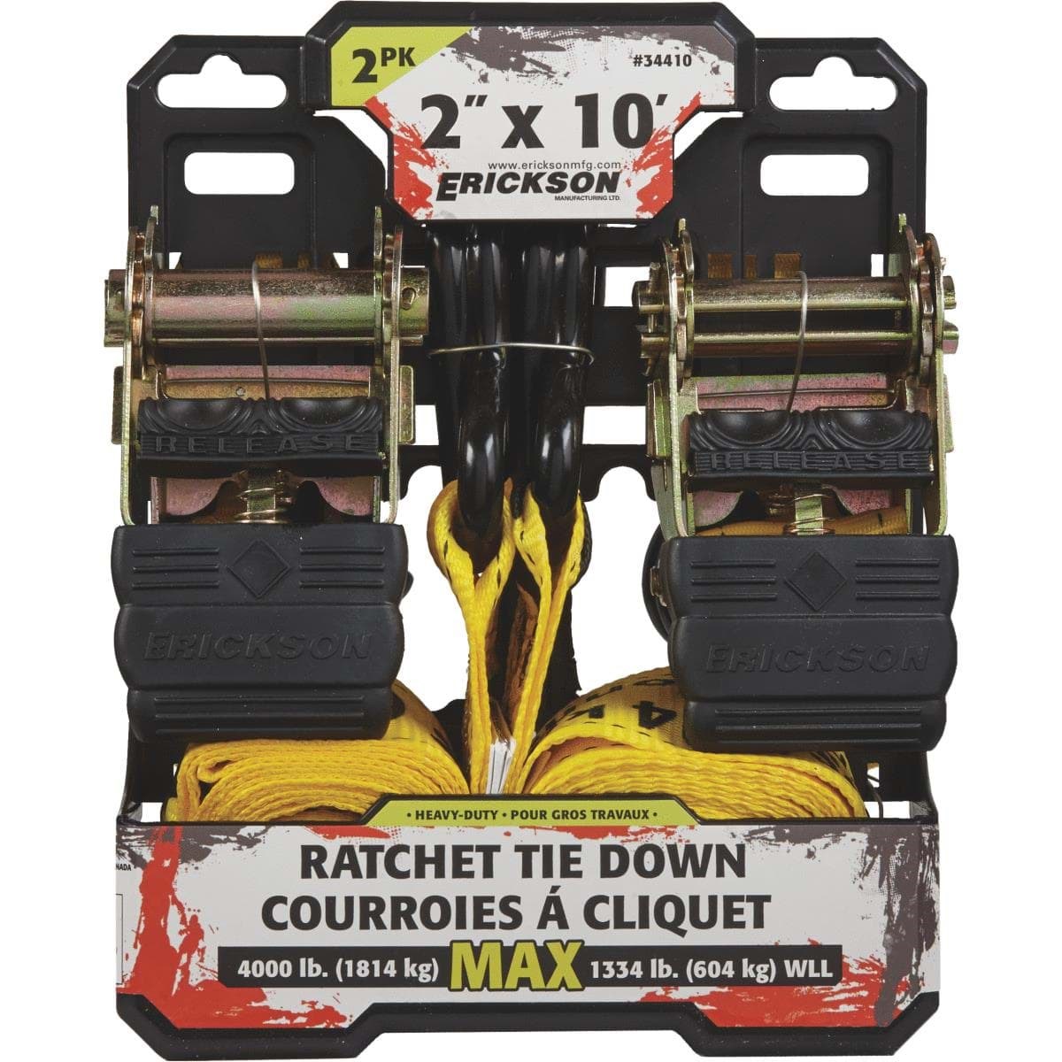 Wide rubber handle ratchet. Double J rubber-coated hooks. 4000 lb. maximum load. 2 per pack.