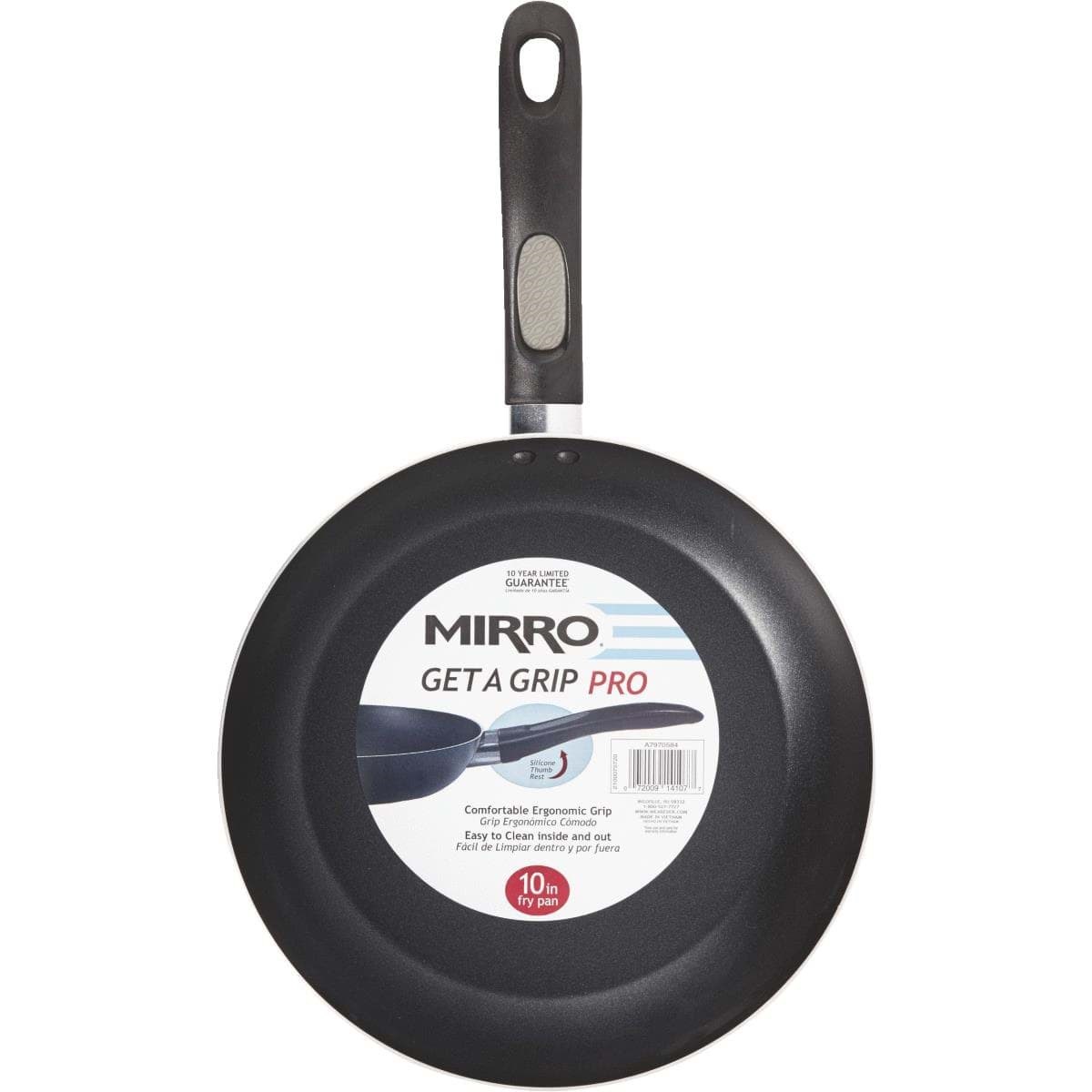 • DescriptionGet A Grip Pro by Mirro . Soft-grip, stay cool handles. Nonstick interior prevents food from sticking. Nonstick exterior for easy cleaning.