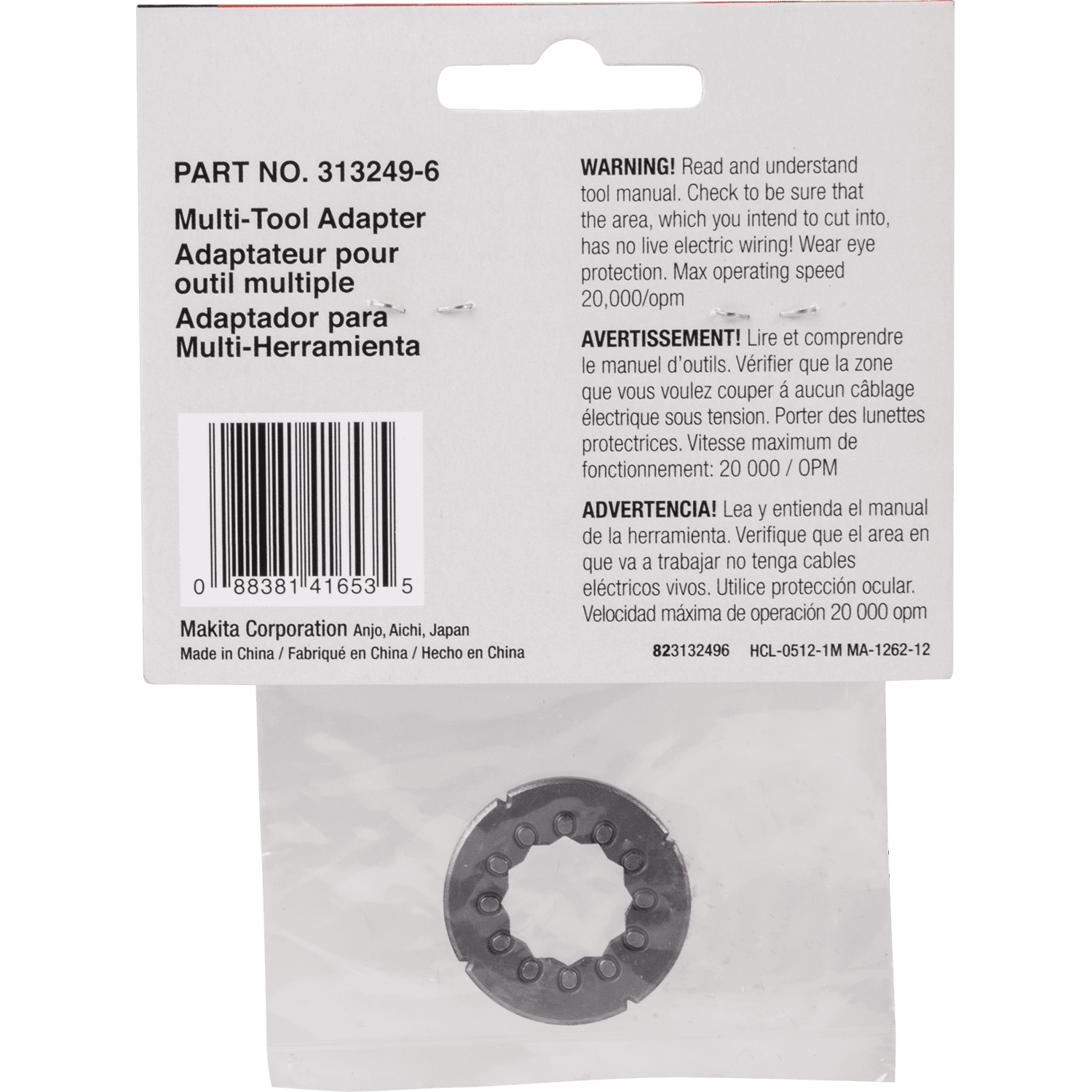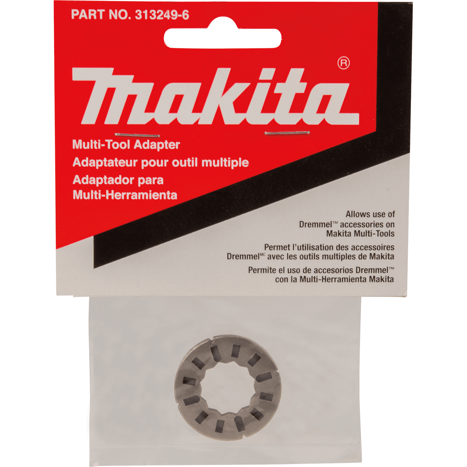 Trades and build-it-yourselfers are turning to oscillating multi-tools for a full range of cutting and finishing applications, so get the right accessory for the job. The Makita Multi-Tool Adapter is engineered for use with Dremel accessories on Makita corded (TM3000CX5) and 18V Cordless (LXMT025) Multi-Tools. The Makita Multi-Tool Adapter is machined from high-quality steel for long life, and is ideal for a variety of multi-tool applications. Allows use of Dremel® accessories with Makita corded (TM3010CX1) and 18V LXT® Lithium-Ion Cordless (XMT03Z) Multi-Tools. For use in a variety of applications associated with multi-tools. Machined from high strength materials for long life. Installs quickly and easily.