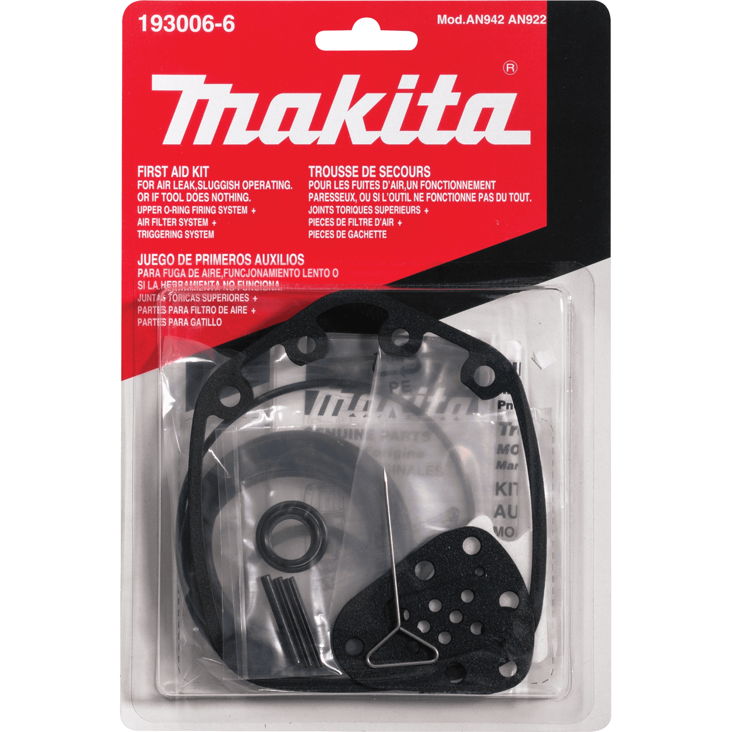 Makita Repair Kit is designed for the Makita Framing Nailers models AN923 and AN943. The included manual includes complete instructions. The Repair Kit fixes sluggish operation problems. For air leakage repairs. Includes complete top, bottom and driver maintenance equipment. Comes with repairing instruction manual. Use with Makita AN923, AN943.