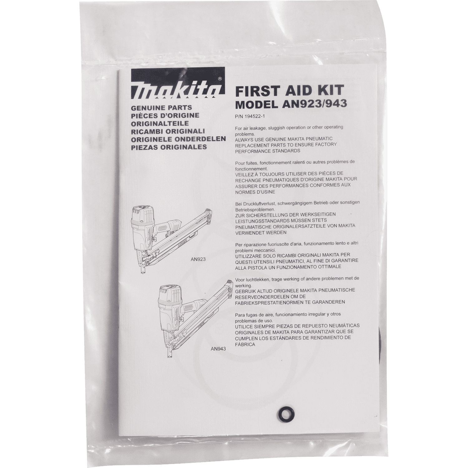 Makita Repair Kit is designed for the Makita AN923 3-1/2" Framing Nailer. The included manual includes complete instructions. The Repair Kit fixes sluggish operation problems. For air leakage repairs. Includes complete top, bottom and driver maintenance equipment. Comes with repairing instruction manual. Use with Makita Framing Nailer model AN923.