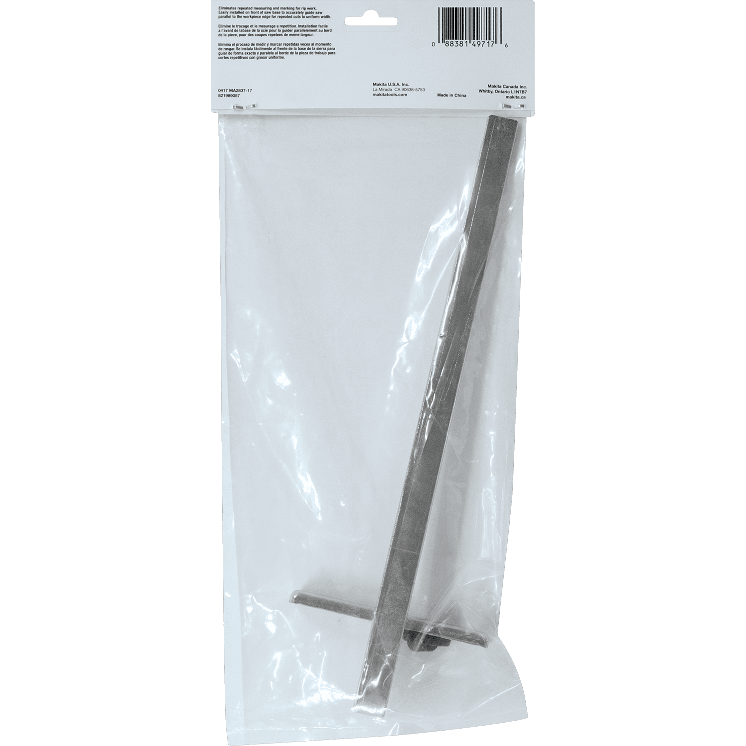 The Makita Circular Saw Rip Fence is a time-saving tool engineered for ripping material to a uniform width. It features all-metal construction for increased durability and is designed for jobsite use. For use with select Makita Circular Saws. For ripping material to a uniform width. All metal design increases durability and provides longer life. Quick and easy installation. Includes rip fence 165153-3 and screw 251887-5.