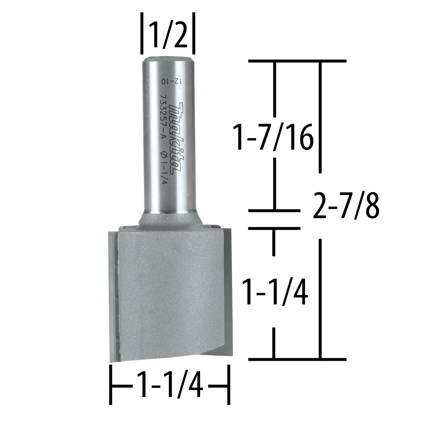 - INCLUDES - Router Bit 1-1/4" Straight 2 Flute, 1-1/4" Cut, 1/2" SH, C.T
