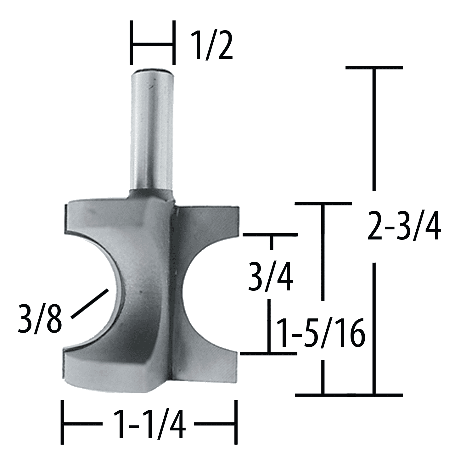 - INCLUDES - Router Bit 3/4" Bull Nose, 2 Flute, 1/2" SH, C.T.