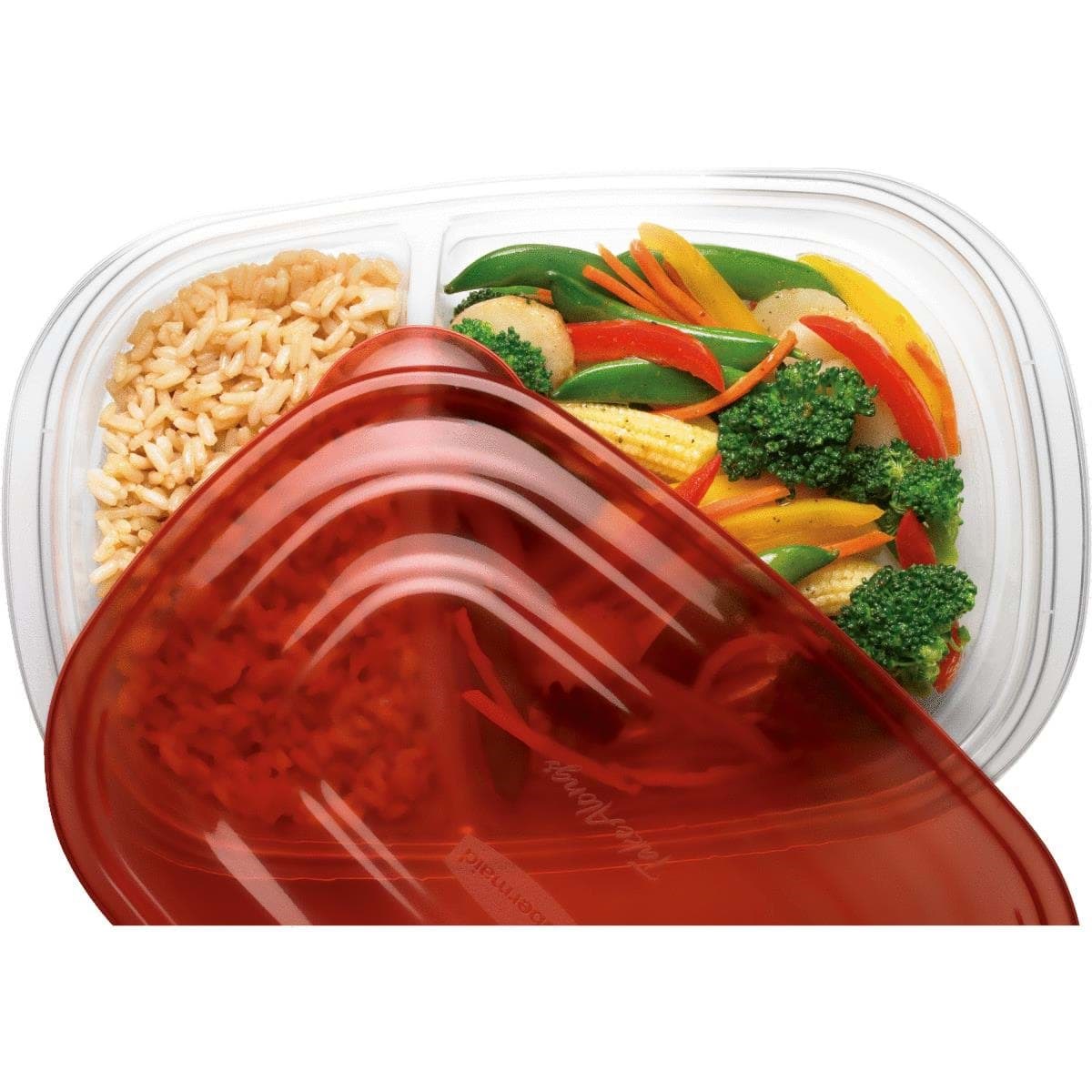 Soft lid grips container tightly for a great seal, yet is easy-to-open, even out of the freezer. Double seal keeps food in the container and helps prevent spills. Large tab makes lid easier to grip when opening. Microwave reheatable, top rack dishwasher and freezer safe. Chili red lid and clear base.