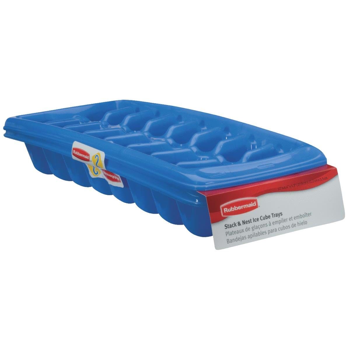 Flexible trays allow cubes to drop out easily and are designed to channel water so trays fill quickly. Simple system to stack for freezing or nest for storage. Trays are top rack dishwasher safe. 2 trays per set. Periwinkle. Size: 1.92" x 4.45" x 10.86".