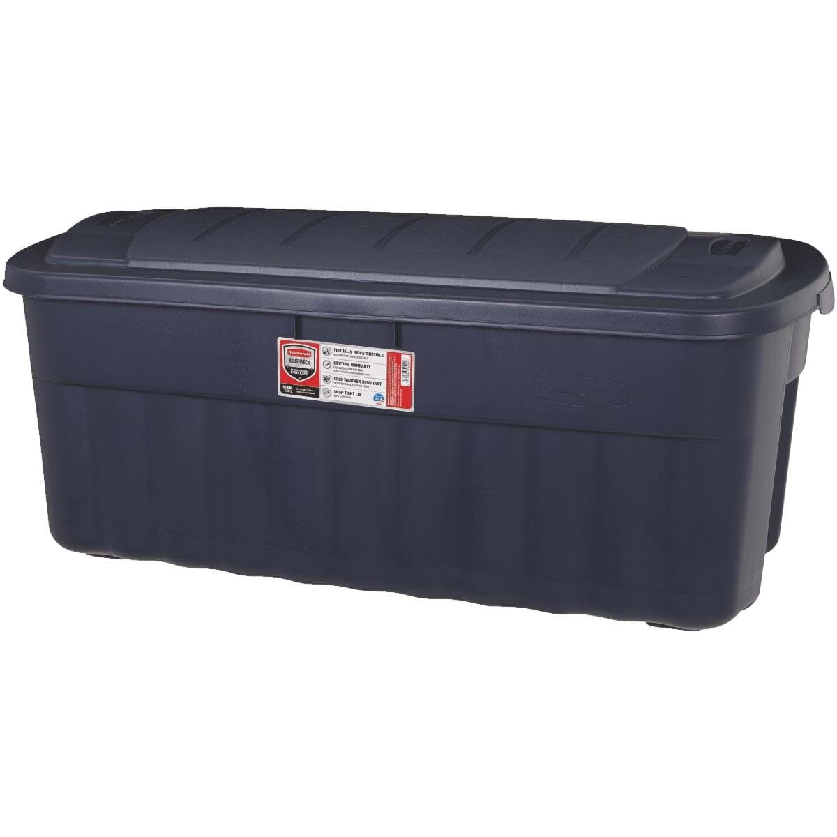 Large, comfortable integrated handles offer easy lifting and portability. Stackable when full and nestable when empty for space efficiency. Perfectly sized for bulky item storage, such as large holiday decorations or large garden tools. Durable storage in harsh hot or cold temperatures that can be found in basements and attics. Made from tough polyethylene plastic with a secure stay tight lid.