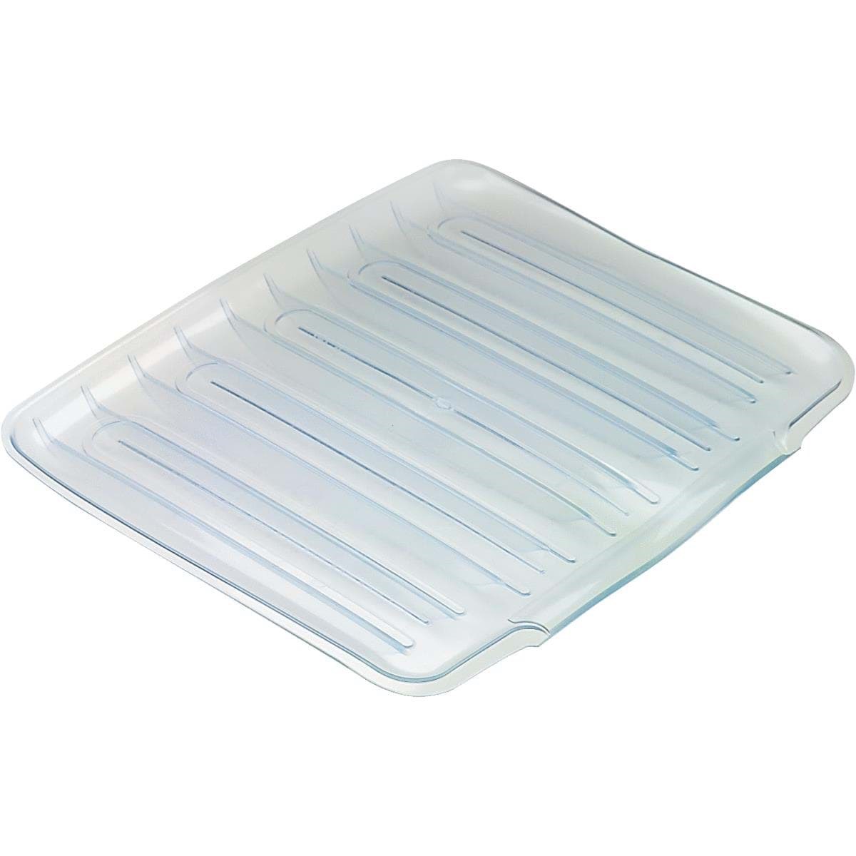 Sloped drainer tray returns water to the sink to keep counter dry. Built-in Microban antimicrobial product protection fights growth of stain and odor causing bacteria. Cushioned protection for tableware and countertop. Lip hangs over edge.