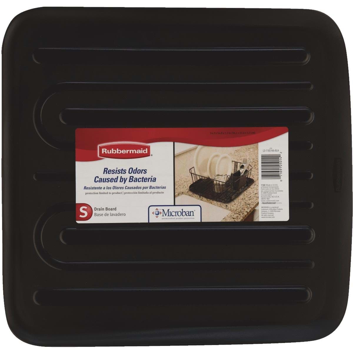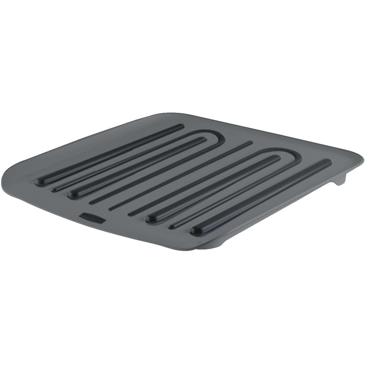 Sloped drainer tray returns water to the sink to keep counter dry. Built-in Microban antimicrobial product protection fights growth of stain and odor causing bacteria. Cushioned protection for tableware and countertop. Lip hangs over edge.