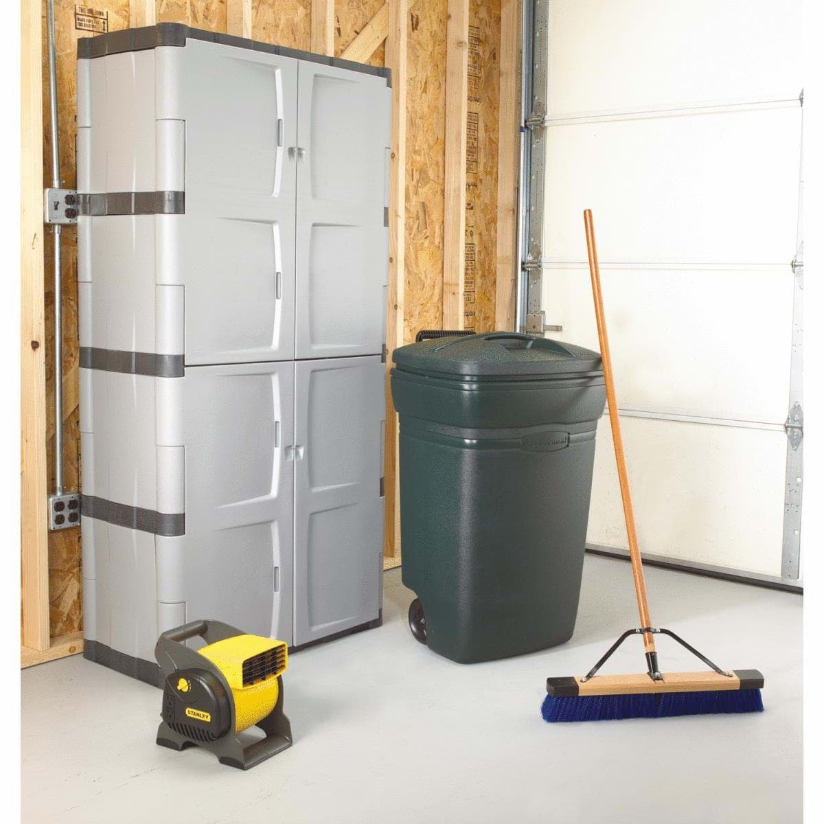 Rubbermaid brand heavy-duty wheels provide easy transport over gravel and other tough surfaces. Rugged, heavy-wall construction stands up to intense sunlight and sub-freezing temperatures without cracking, denting, or rusting. Snap-on lid maintains shape.