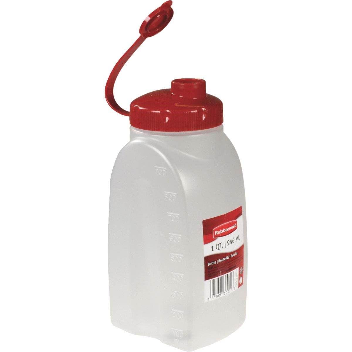 Tight sealing caps help prevent leaks and spills. See-through base has easy-to-read capacity markings. Bottles fit in most refrigerator doors. Dishwasher safe away from heating element. Racer red colored lid.