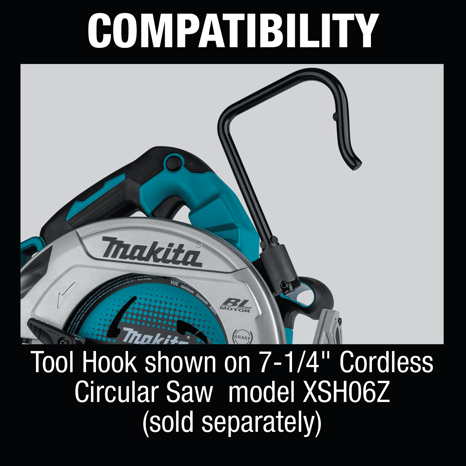 Add convenience and efficiency to your 18V LXT Sub-Compact Circular Saw (models XSH06, XSH07, XSH08, sold separately) with the Sub-Compact 7-1/4” Circular Saw Hook, model 199386-8. The Makita Tool Hook for 7-1/4" Cordless Circular Saws allows the tool to remain close while working. Made of high-quality materials, the tool hook installs quickly and easily. Allows the tool to remain close by when working. Installs quickly and easily. High quality materials for long life. For use with Makita Cordless 7-1/4" Circular Saw models XSH06, XSH07 and XSH08.