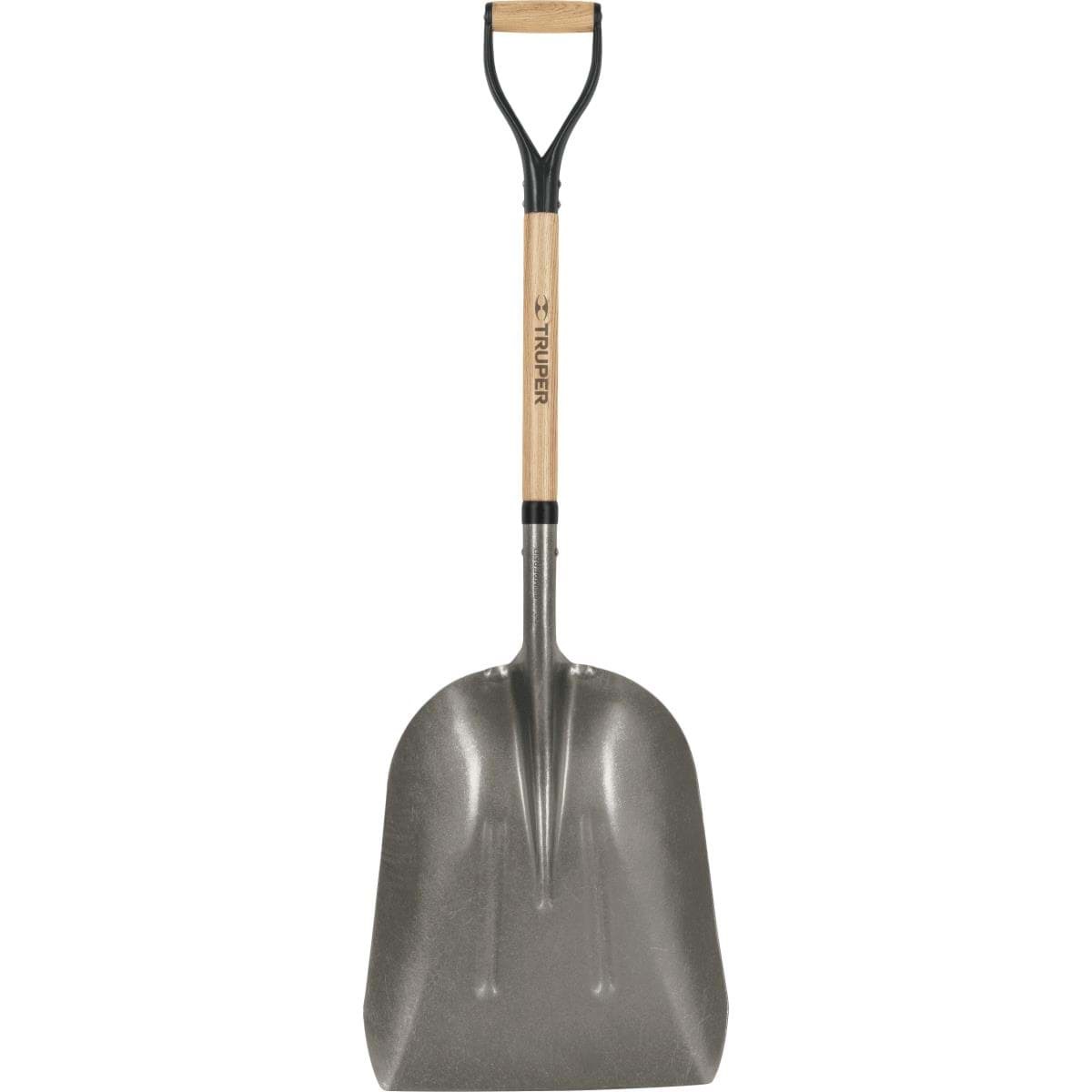 27 In. American ash hardwood handle with a steel and wood D-grip handle. Ribbed blade. Size: #8, blade: 14 In. W x 18 In. L.